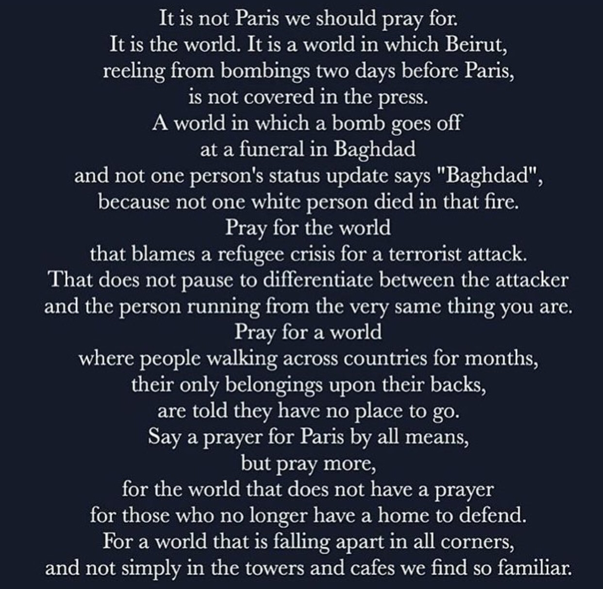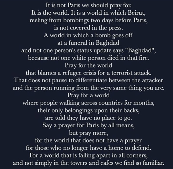 November 17, 2015Reblogcb Wonder Of My Worlds Pray for humanity. View original postShare this: Click to share on X (Opens in new window) X Click to share on Facebook (Opens in new window) Facebook Like Loading... Related