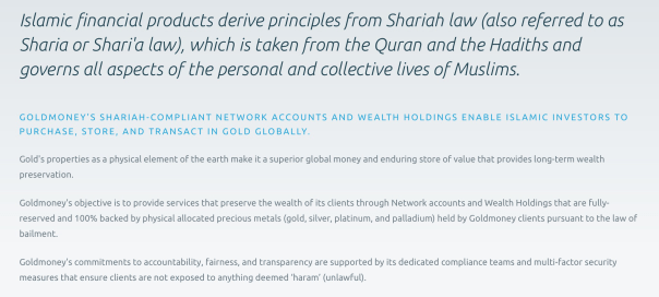 In 2017 Goldmoney Inc. announced that Goldmoney Network accounts and Wealth Holdings had been endorsed as Shariah-compliant by the Shariah Supervisory Board of Amanie Advisors, which issued the fatwa in accordance with the Shariah Standard on Gold set by the Accounting and Auditing Organization for Islamic Financial Institutions (AAOIFI) and developed in cooperation with the World Gold Council. Additionally in 2017 Goldmoney Inc. launched additional payment integrations allowing for direct-to-bank redemptions and credit card processing in Indian rupee for Goldmoney Network.