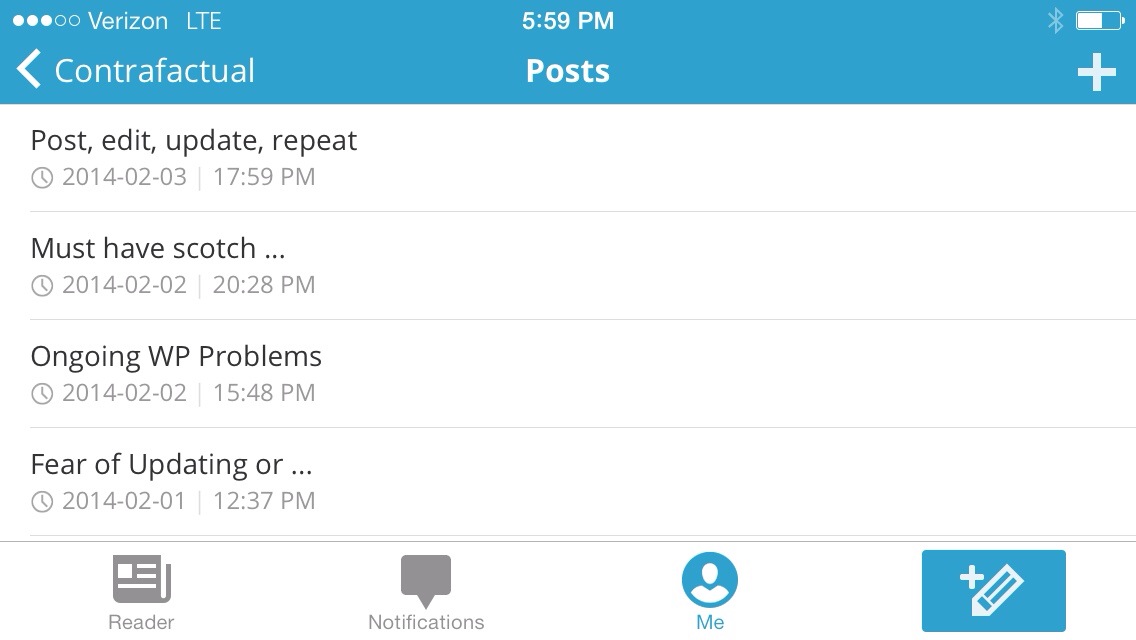One) I have been writing Contra factual using the iPhone almost exclusively since I got the iPhone