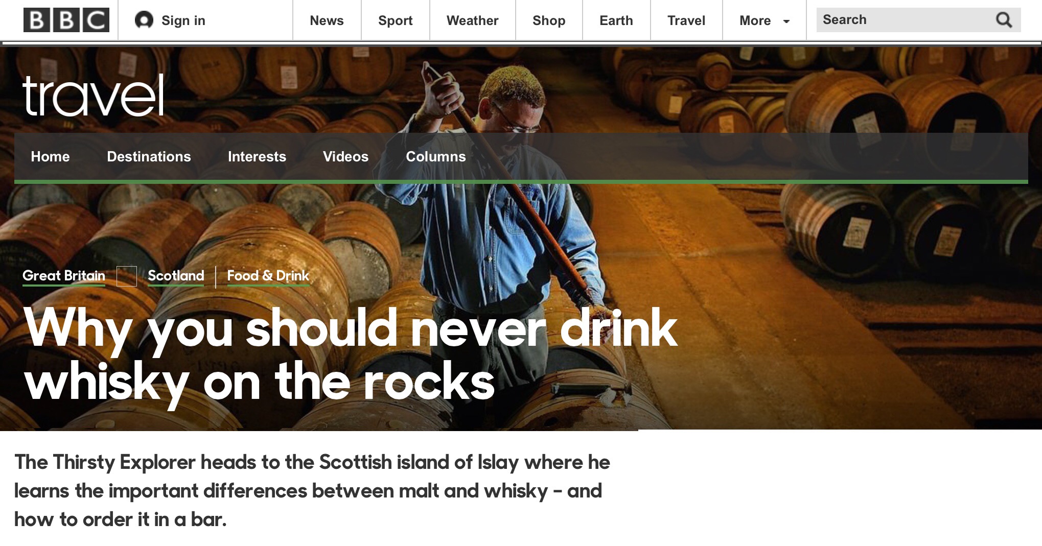 Despite the name of the BBC Travel article below, it is actually mostly a review of my favorite peated single malts from Islay.