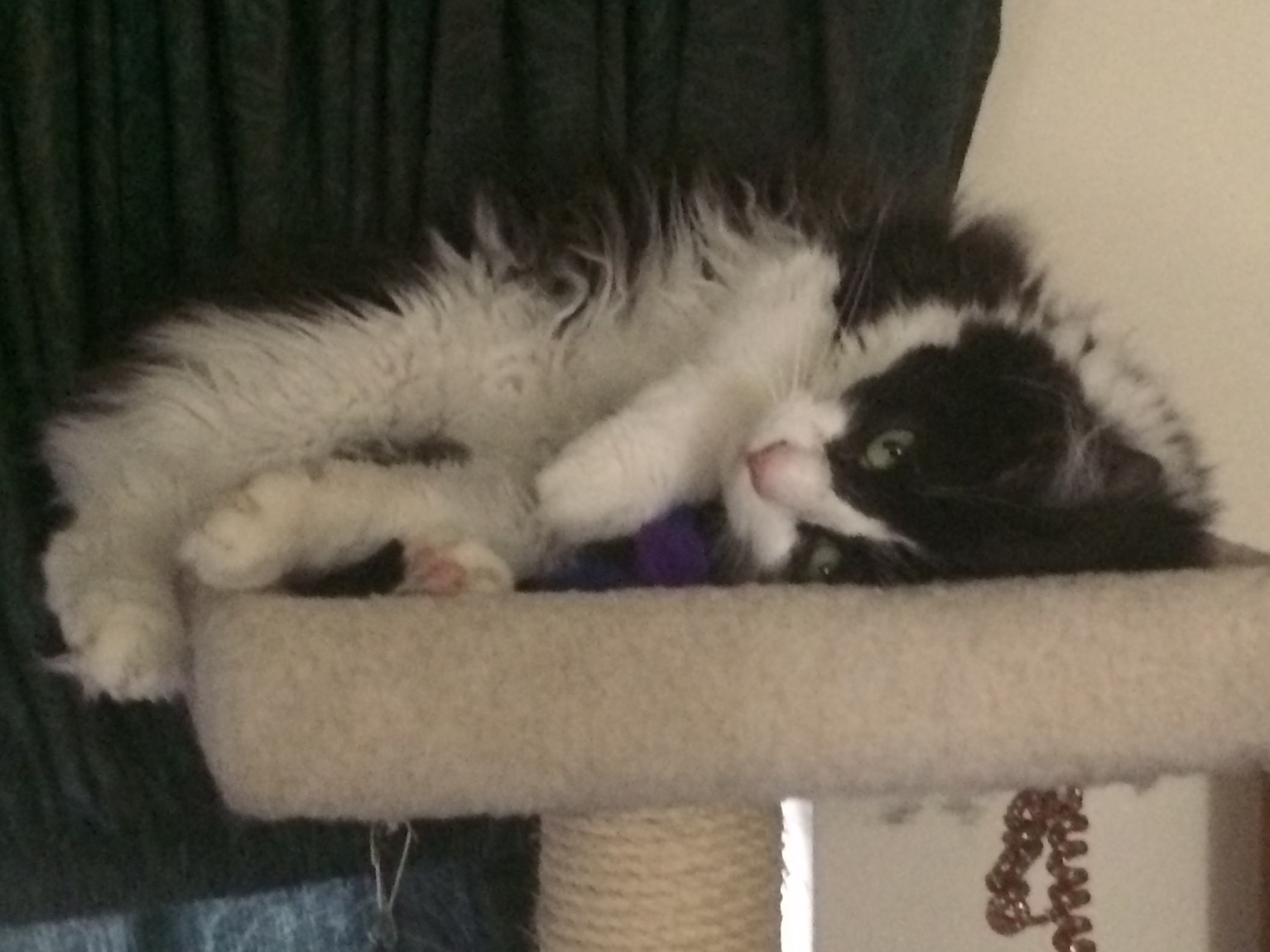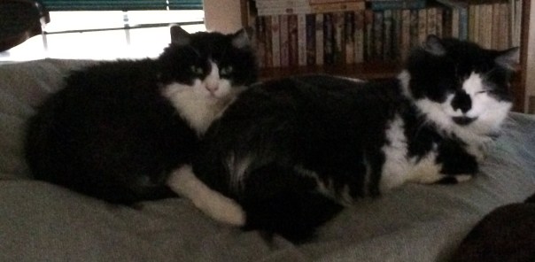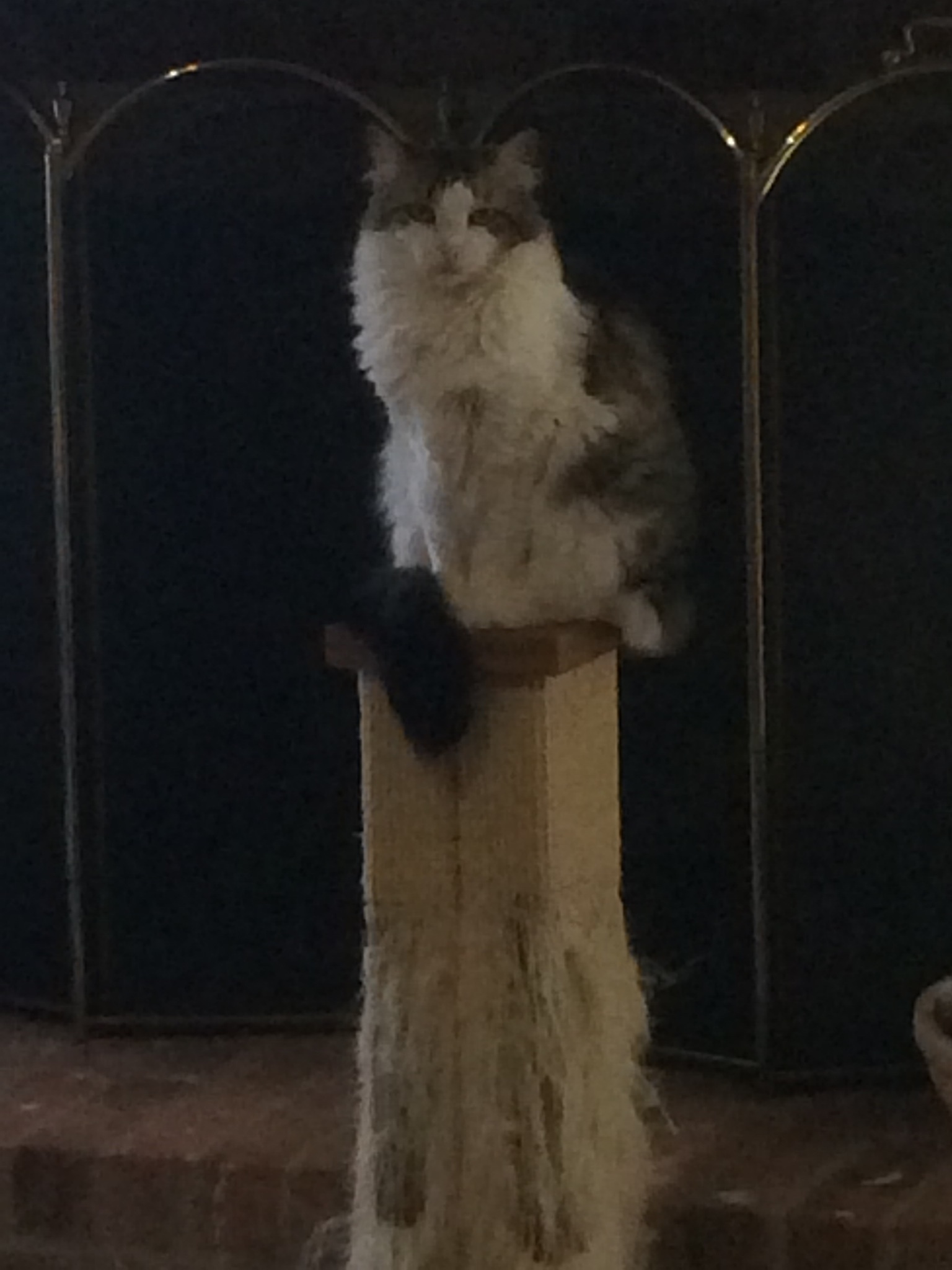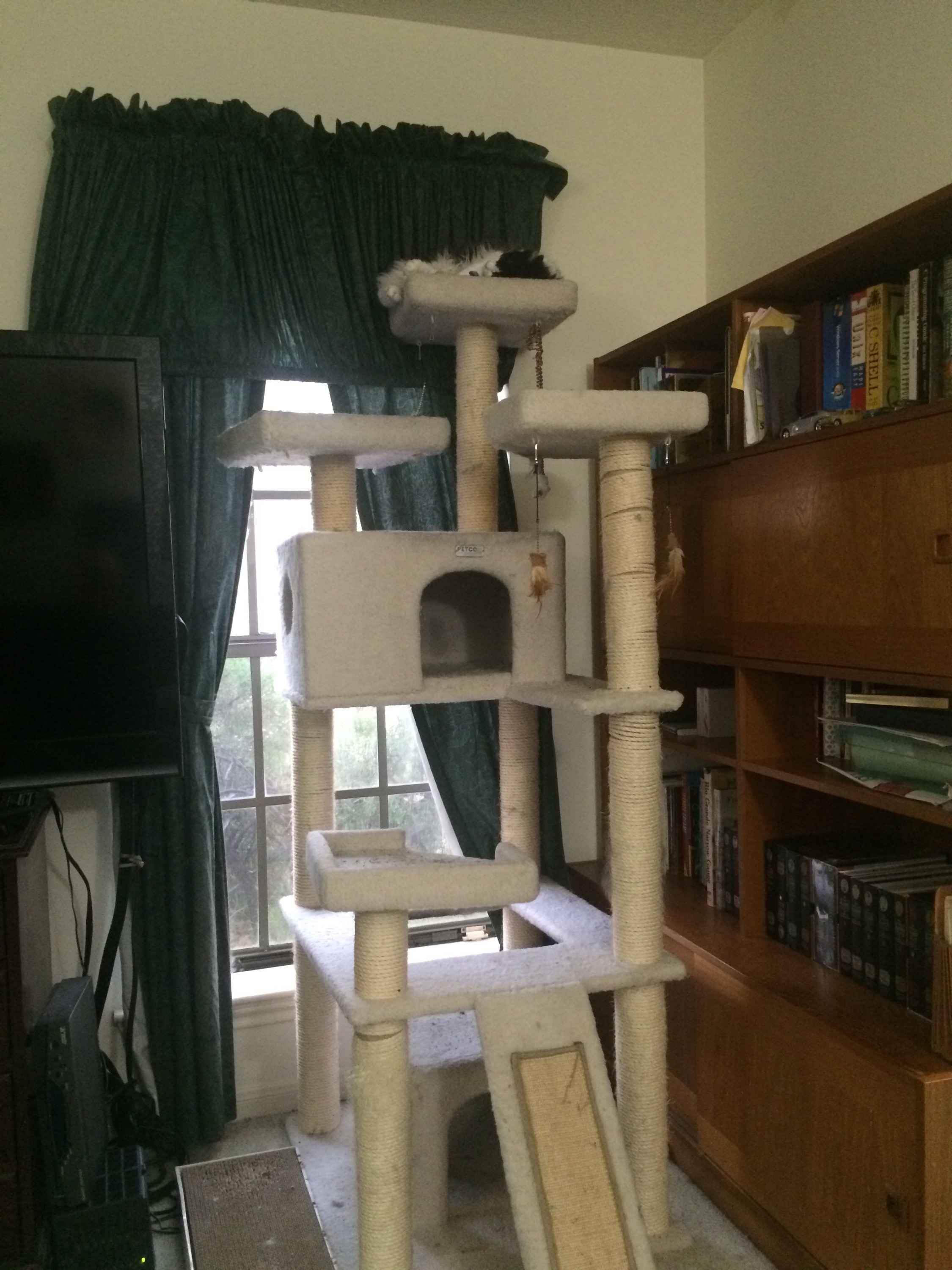 Pickles (left) and Sir Edmund Hillary (right) napping on the cat “tree”.